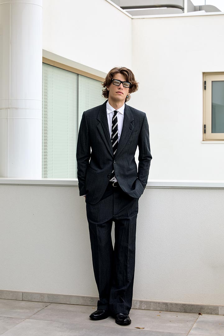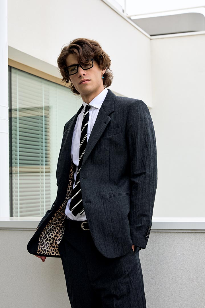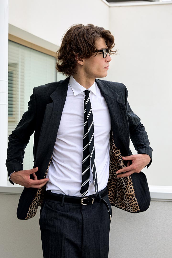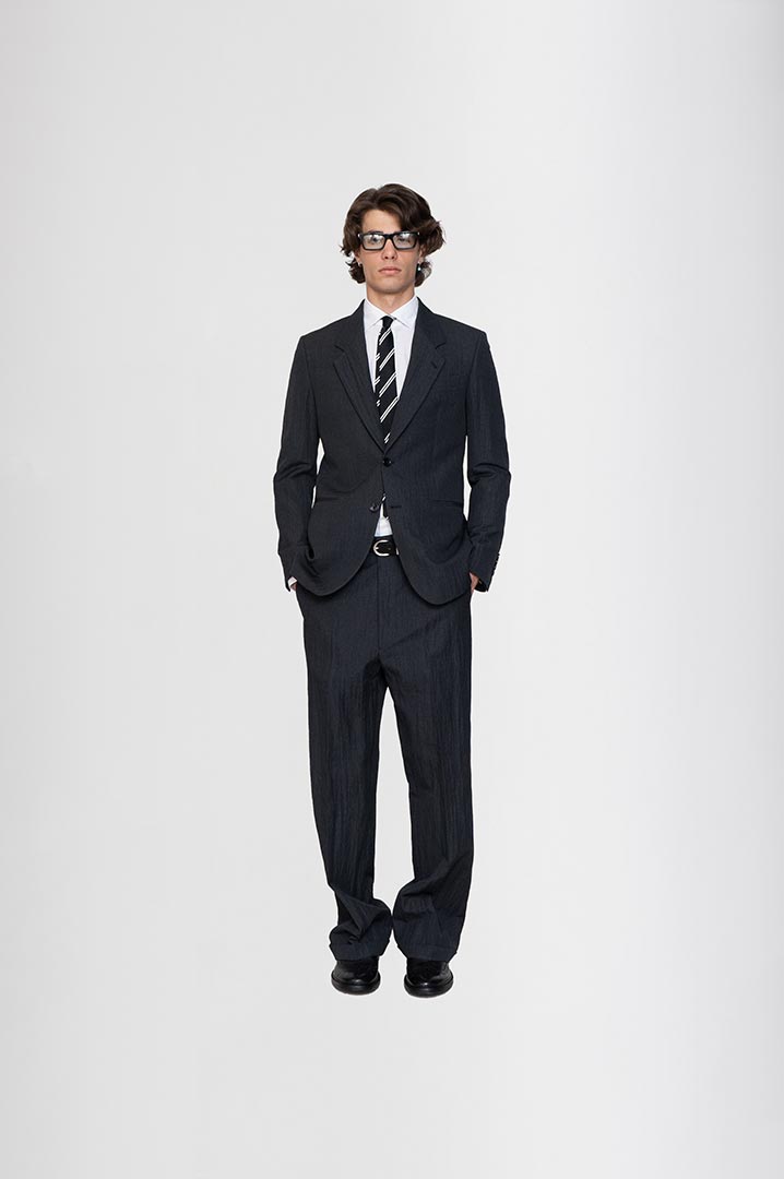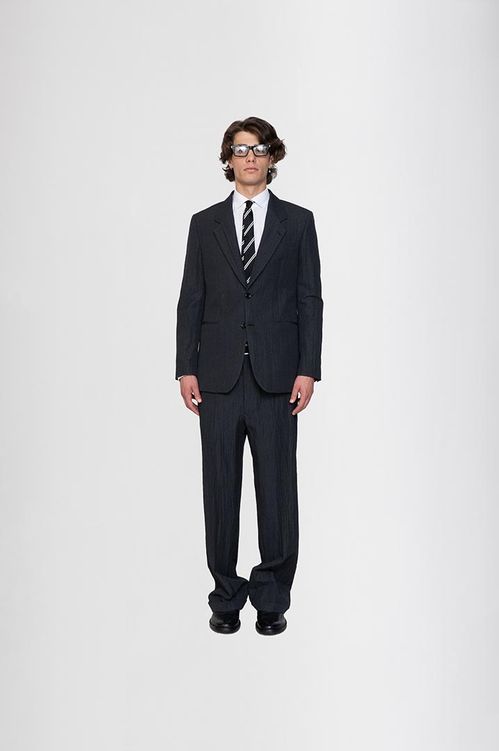 In lana con effetto stropicciato permanente di Vitale Barberis canonico, colore grigio piombo.