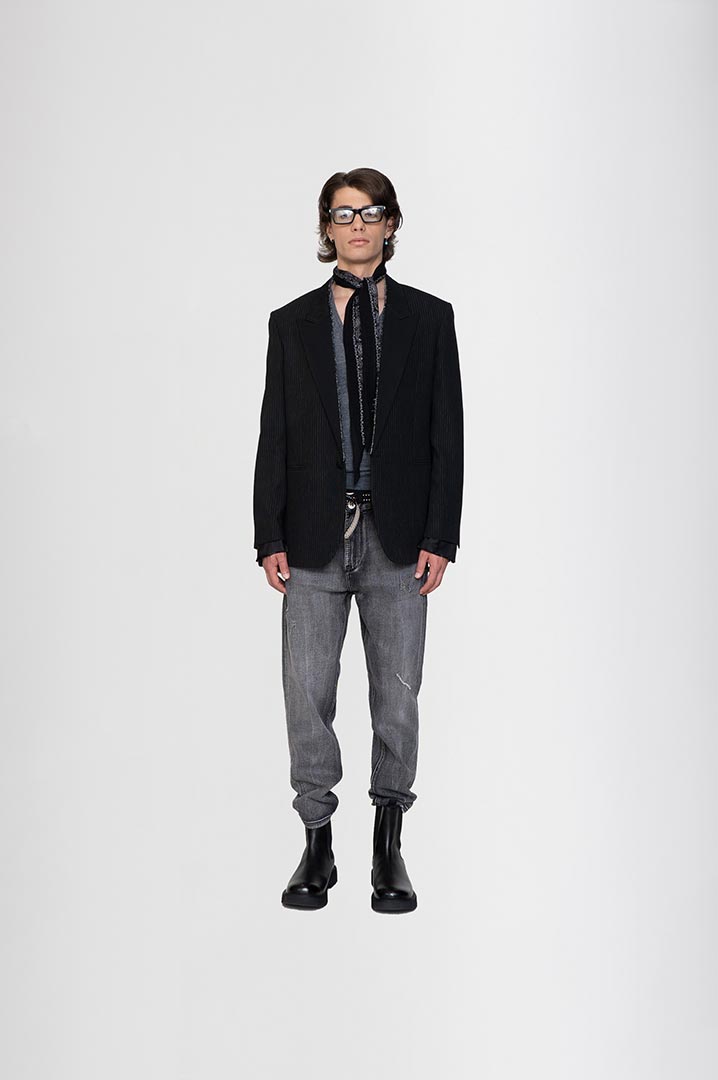 gessata intelata con taglio vivo nella spezzatura del revers e del collo, Il fondo della manica ha la fodera in taglio vivo