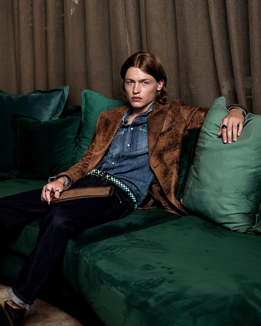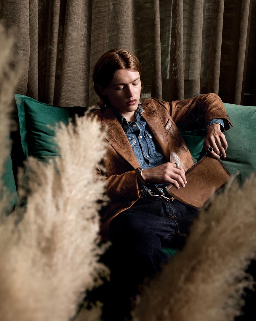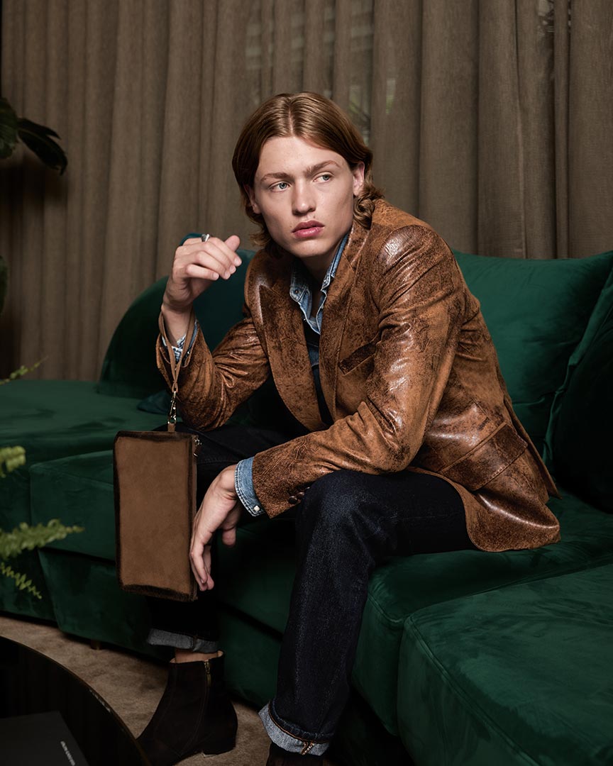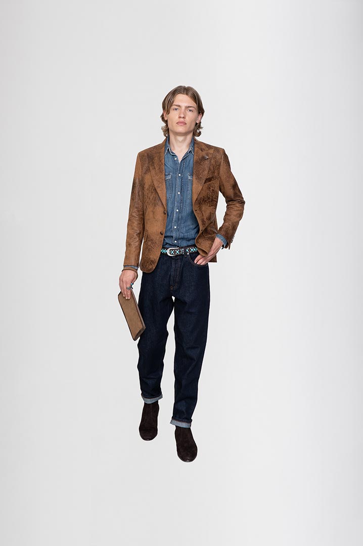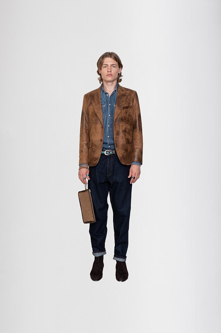 Ecopelle effetto vintage color cognac.