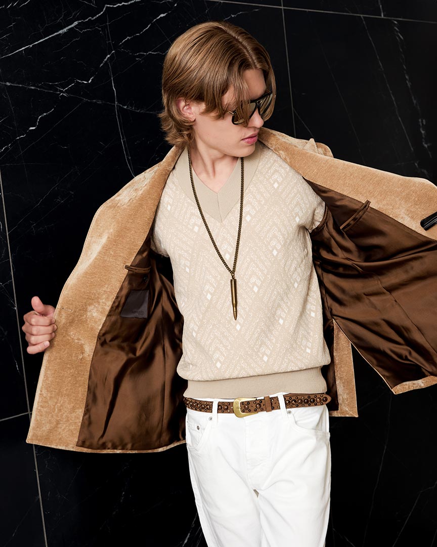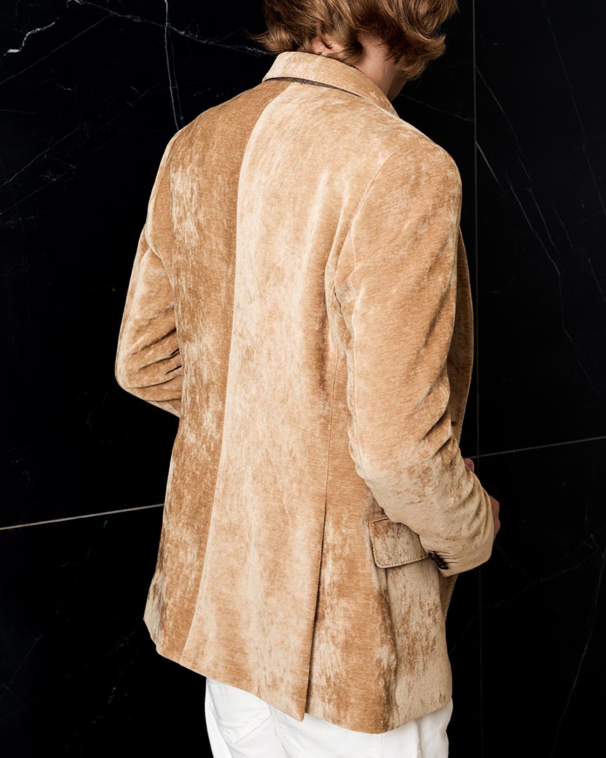 in Ciniglia tecnica con effetto marmorizzato e bottoni in metallo invecchiato